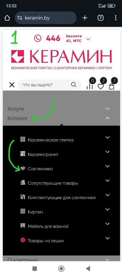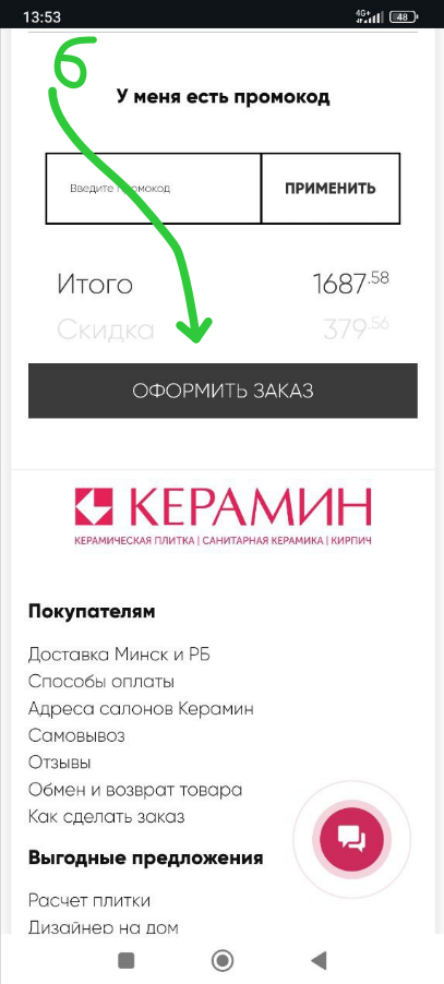 Для того что бы сделать заказ с помощью мобильного телефона зайдите на сайт keramin.by
