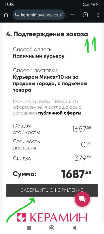 11. Подтвердите заказ нажав кнопку «Завершить оформление»