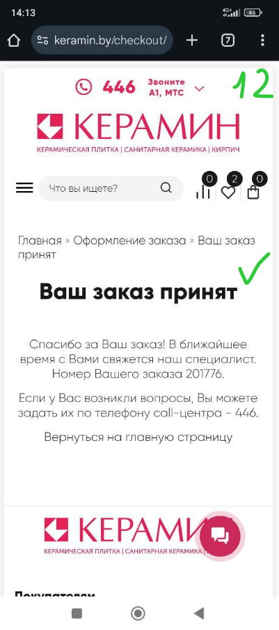 12. Ваш заказ принят! Ожидайте звонка менеджера.