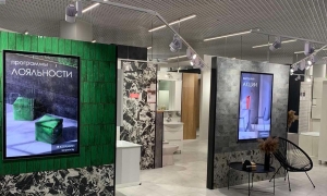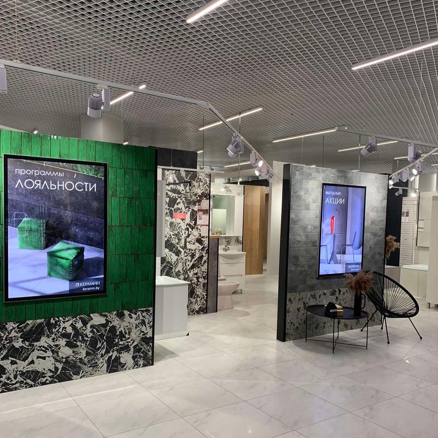 Интерьер салона «Керамин» представляет собой современный и удобный для покупателей формат представленности продукции. Так, в одном торговом зале собрано большое количество демонстрационных кабин с готовыми интерьерными решениями по облицовке помещений различного назначения. Новый подход в демонстрации санитарной керамики и сопутствующих товаров поможет легко определиться с необходимым ассортиментом для благоустройства Вашего жилья.