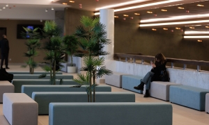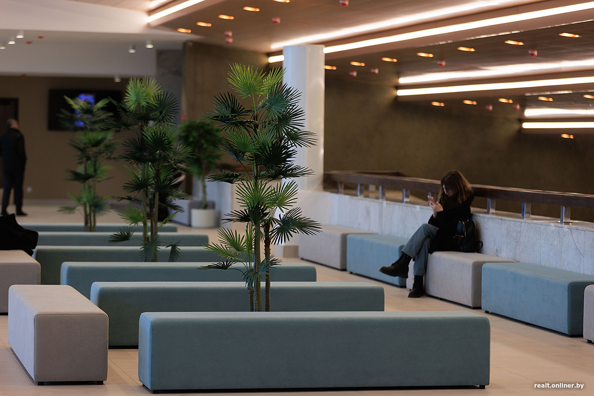Материалы «Керамин» не только великолепно выглядят, но и отвечают всем современным требованиям к качеству и долговечности. Особое внимание уделили общественным зонам, бережно сохранив оригинальные мраморные и гранитные поверхности вестибюля, колонны и лестницы.