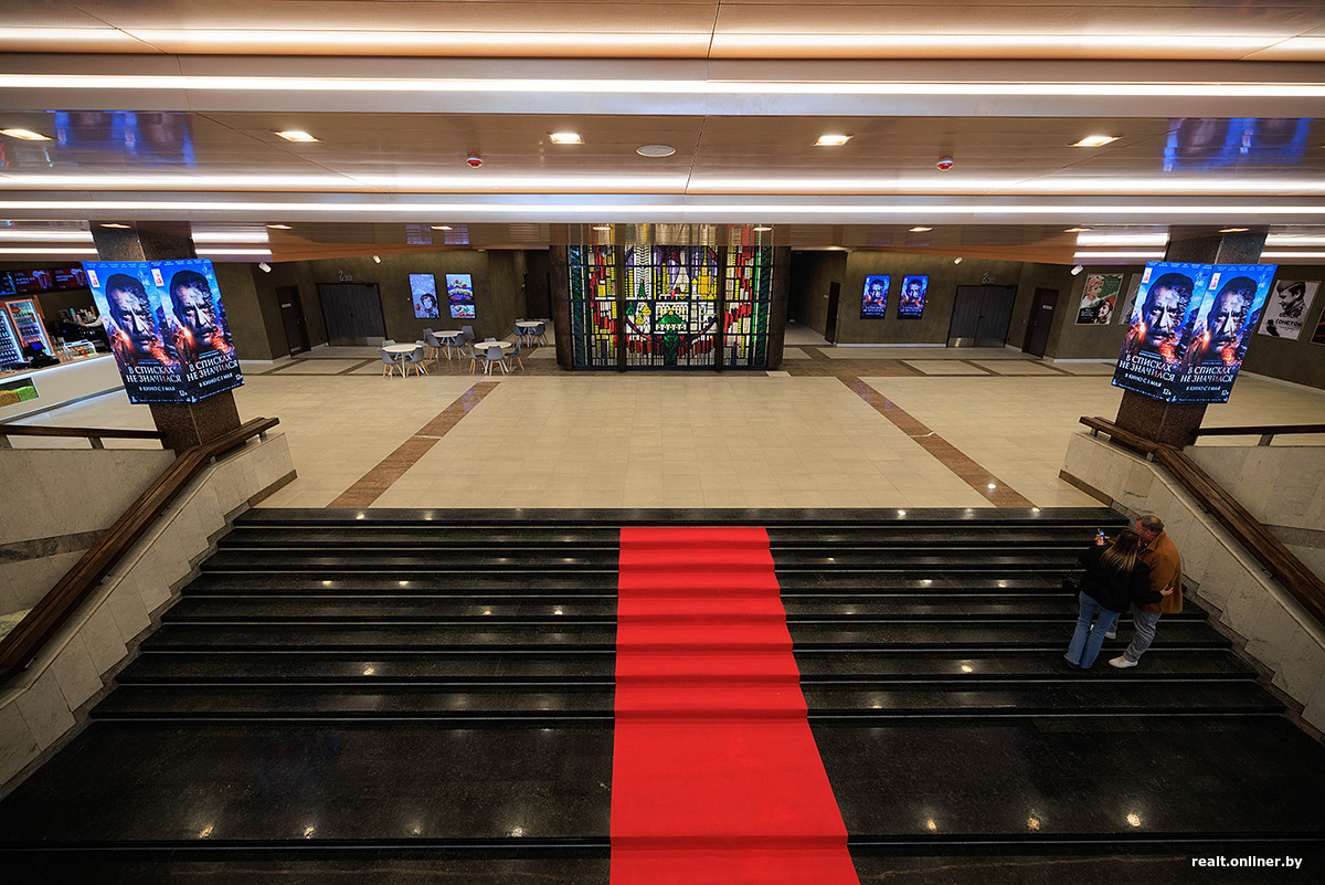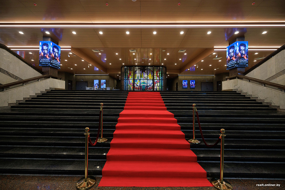 Внешне кинотеатр сохранил свой узнаваемый облик, однако внутри произошла настоящая революция, вдохновленная материалами «Керамин». Специально для фасада была разработана эксклюзивная коллекция широкоформатной плитки, искусно имитирующей природный мрамор и придающая зданию особый шарм. Устаревшие витражи уступили место современным энергоэффективным, а 15 медных щитов, символизирующих республики СССР, были бережно сохранены как дань истории.