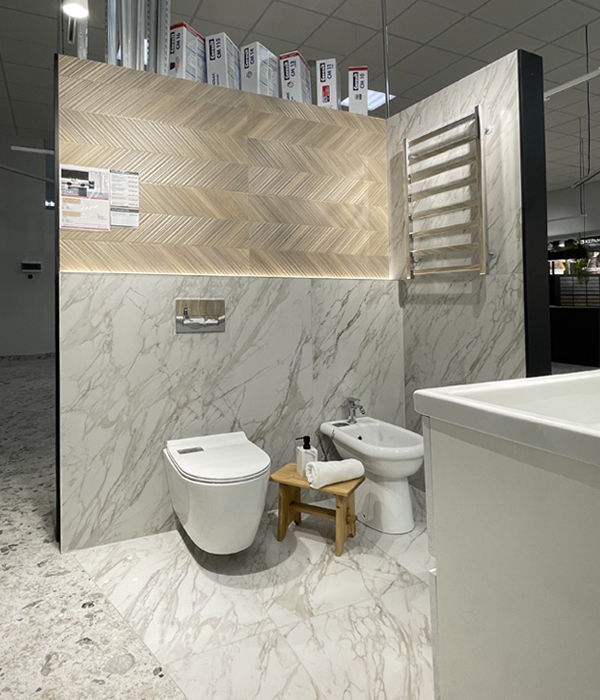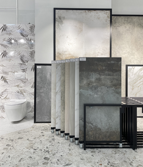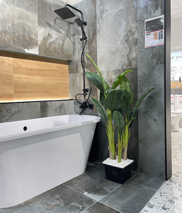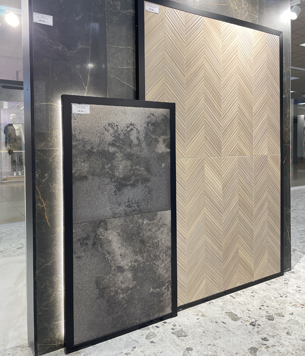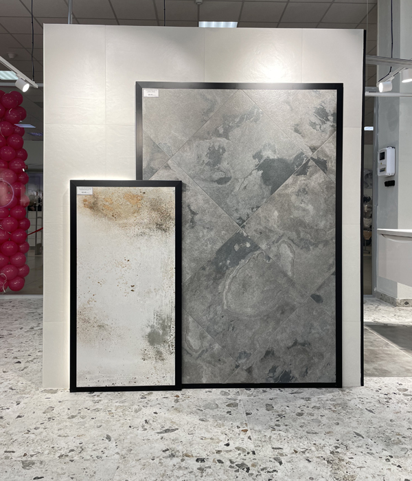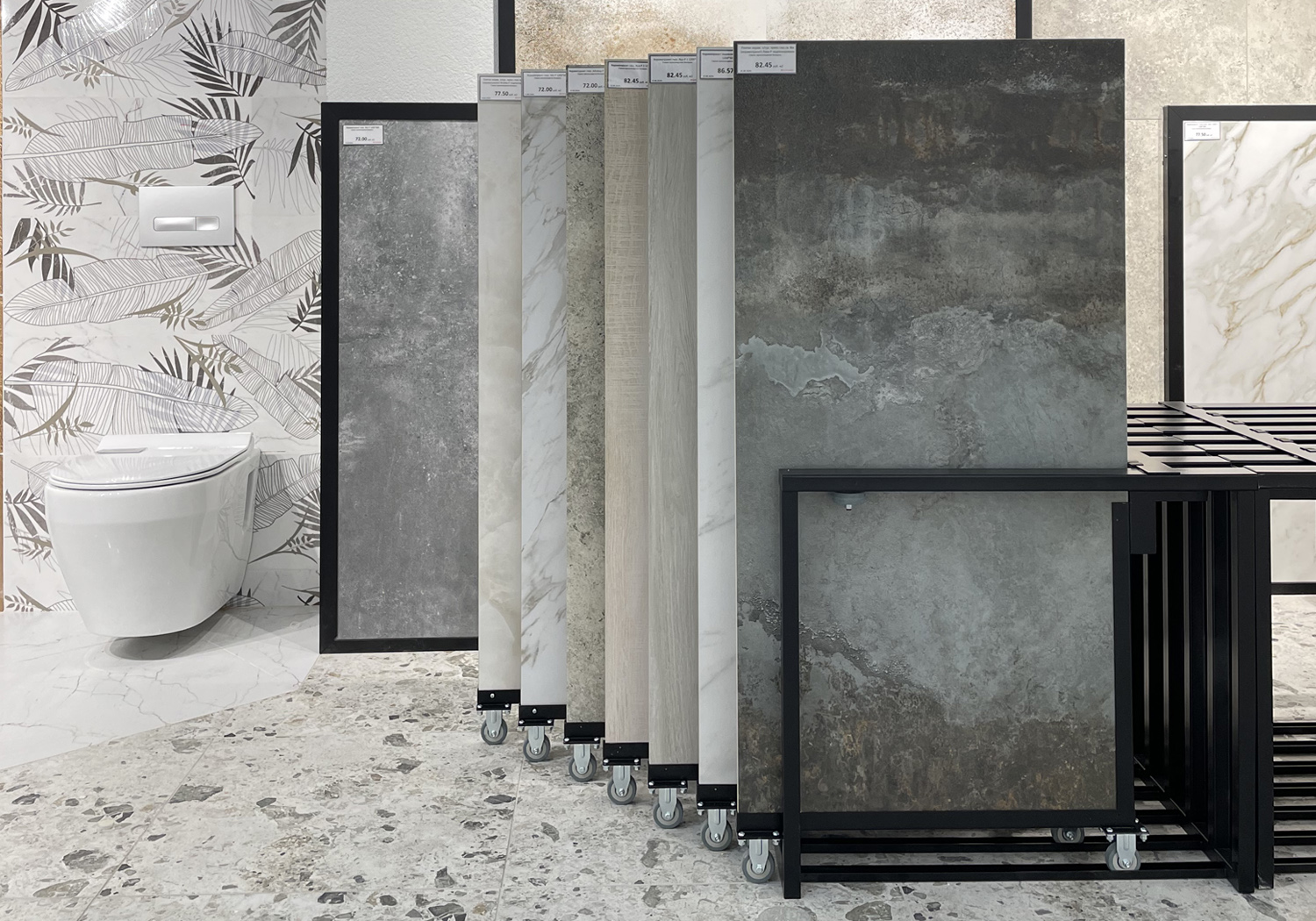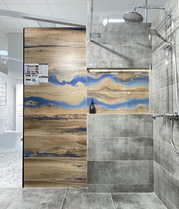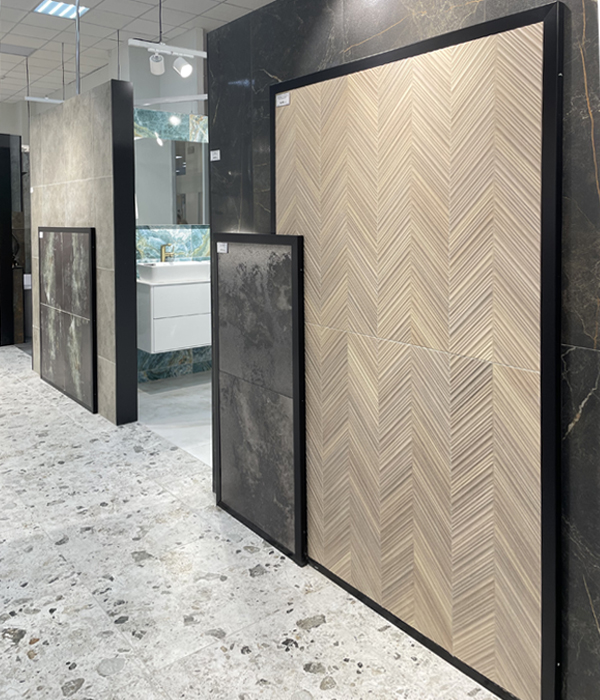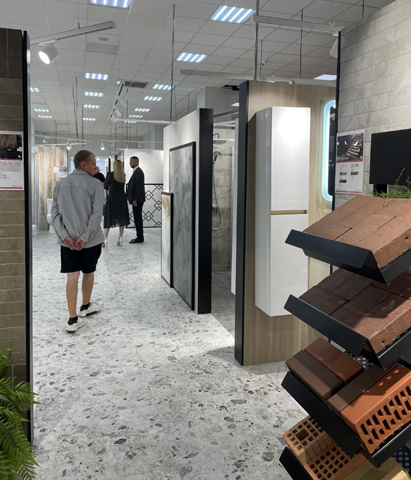 Общая площадь салона составляет 400 м², на ней демонстрируется более 85 коллекций керамической и клинкерной плитки, керамогранита, более 90 моделей санитарной керамики. Представлены образцы мебели, клинкерной брусчатки, кирпича и всевозможные сопутствующие товары – от клея для плитки до уникальных дизайнерских смесителей для ванных комнат. Формат представленности продукции предполагает «живые» элементы помещений, полностью воплощающие реальные интерьеры с готовыми решениями. В первую очередь в демонстрационных кабинах размещены новинки керамической плитки – коллекции 2024 года. Полное ощущение реального помещения помогают создать элементы мебели и санитарной керамики, которые подобраны именно для конкретной локации и коллекции. Удобное зонирование помещения позволяет легко ориентироваться в салоне и делать выбор удобно – отдельная зона кирпича, широкоформатной плитки и сопутствующей продукции. Ассортимент продукции обширный и покупатель всегда может подобрать на свой вкус и кошелек нужную коллекцию, а стендовое оборудование позволяет продемонстрировать всю товарную программу, которая не представлена в интерьерных кабинах.