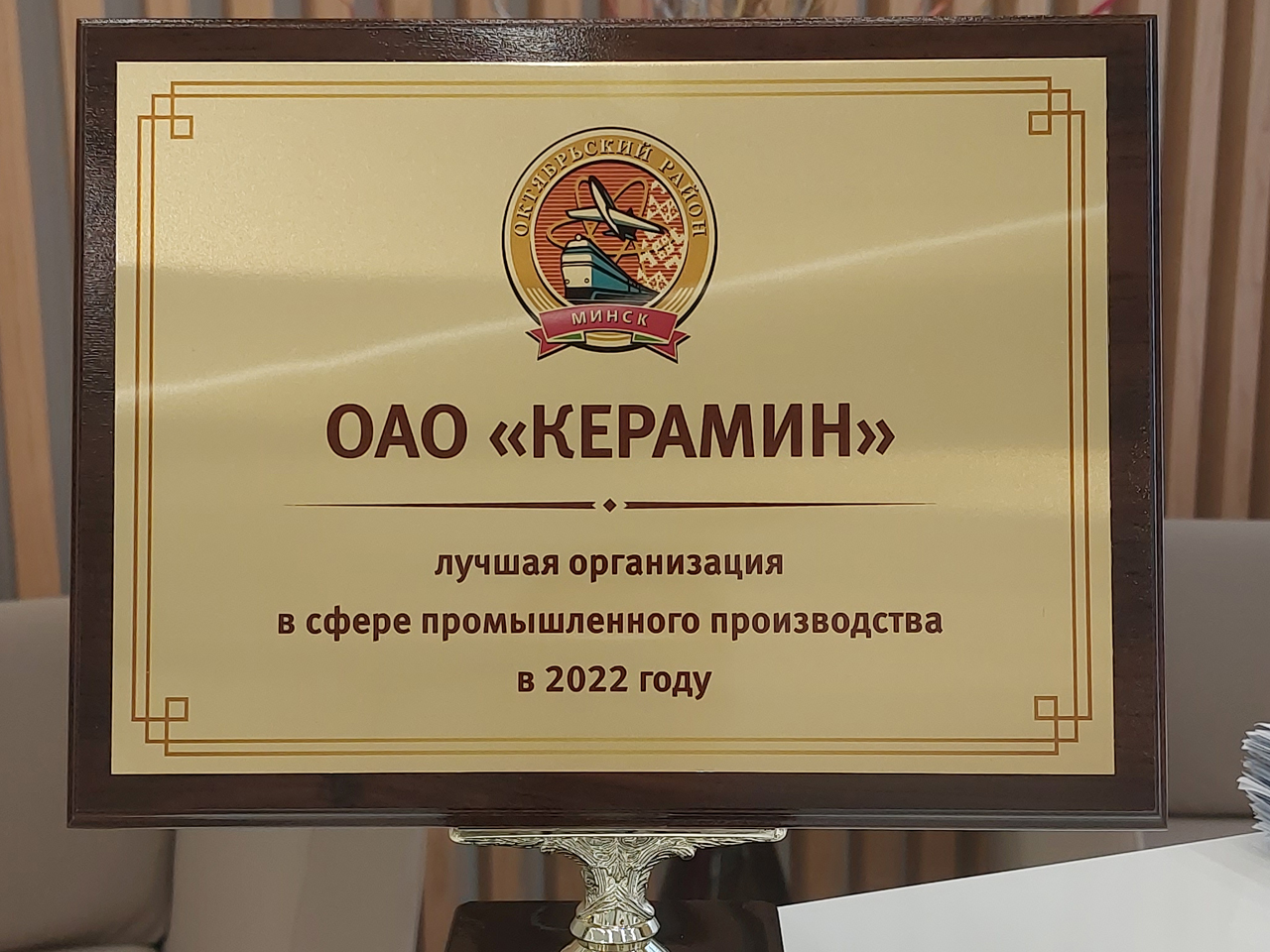 г. Минска. Звания «Лучшего» удостоилось и ОАО «КЕРАМИН» за выдающиеся результаты в сфере промышленного производства по итогам работы за 2022 г.