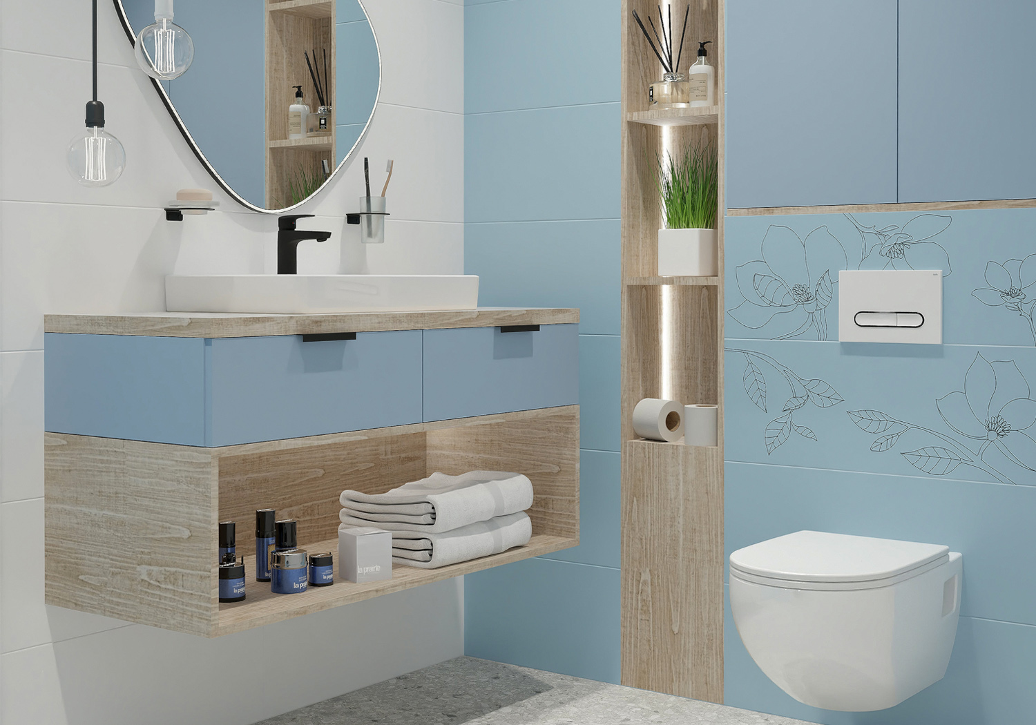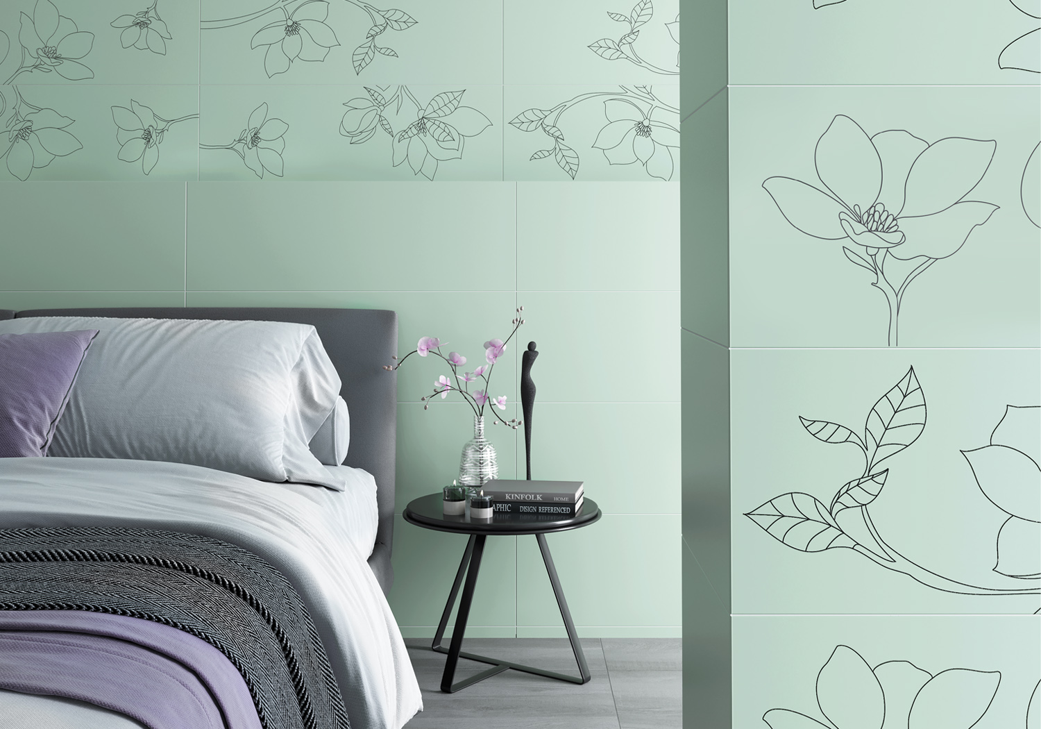 Коллекция плитки «Спирит» от Керамин – это идеальный выбор для тех, кто стремится создать в своем доме атмосферу гармонии и умиротворения. Плитка формата 900x300 мм, выполненная в нежной пастельной палитре и покрытая матовой глазурью, настраивает на созерцание и спокойствие. Однотонная база коллекции разбавлена декоративной плиткой с цветочным рисунком, добавляя интерьеру изысканность и легкость.