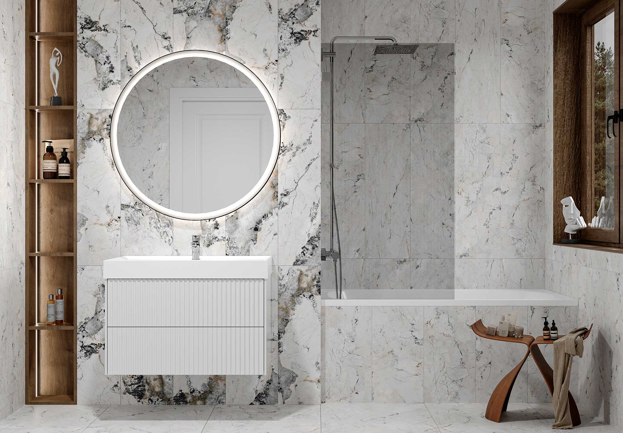 Плитка для пола представляет собой матовый ректифицированный керамогранит 600х600 мм в светлом оттенке с текстурой мрамора, напоминающей строения на одноимённом древнем Афинском холме. В коллекции два вида декоров: один – с объемной структурой, второй – сочетание базовой светлой и стильно вплетающейся в нее темной породы мрамора, создающий невероятный контраст текстур.