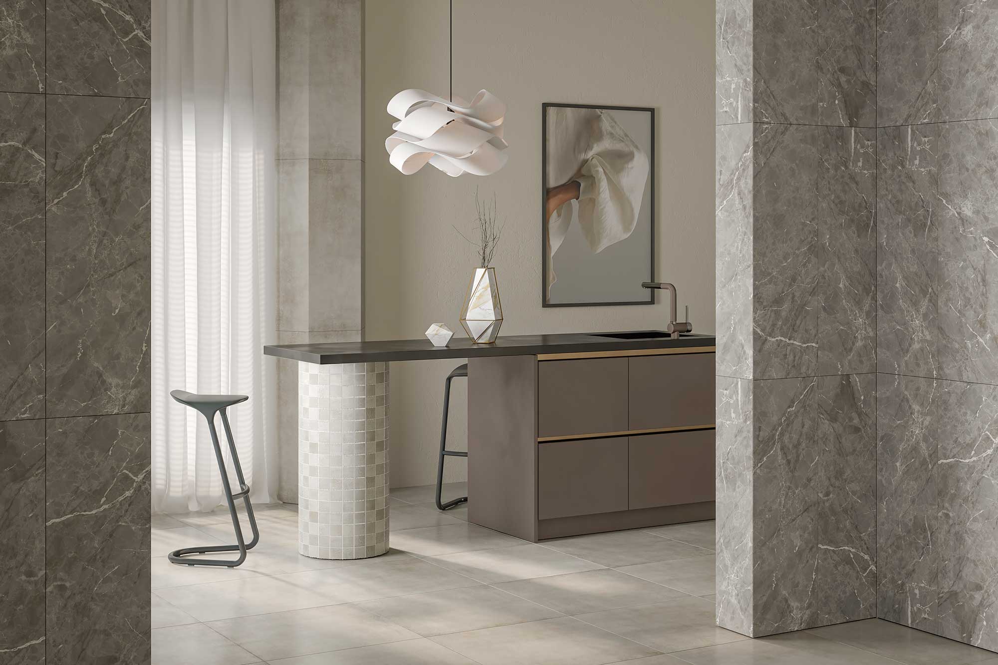 Современный интерьер уже давно отошел от классики. Все чаще мы видим неординарные решения, которые еще пару десятков лет назад были неприемлемы. Одним из таких примеров является сочетание бетона и дерева. Коллекция Солид 900х300 мм представляет собой именно такое сочетание. Базовая плитка коллекции - это имитация легкой бетонной фактуры в светлом и тёмном исполнении, а в декоративной плитке появляется текстура дерева и мы видим, что строгий бетон и натуральный теплый оттенок древесины представляют собой удивительно удачное сочетание. Дерево как бы согревает холодный бетон. Коллекция Солид может стать основой для создания индустриальных интерьеров или дизайна помещений в стиле «лофт».
