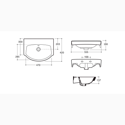 - Умывальник Керамин Альбано 55 без отверстия белый
