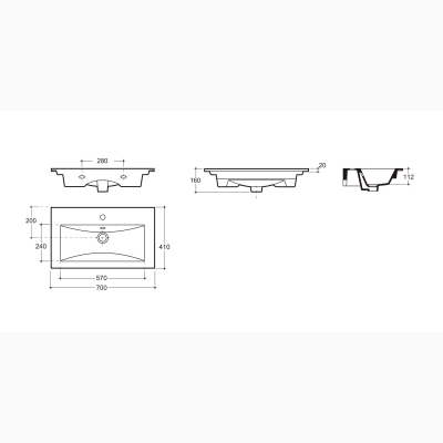 Ширина, мм700Глубина, мм410Высота, мм160КоллекцияМатериалфаянсФормапрямоугольнаяМонтажмебельныйЦветбелыйГарантия5 летОтверстие для смесителядаВес единицы:15.85Производитель:КераминПоверхность:Глянцевая