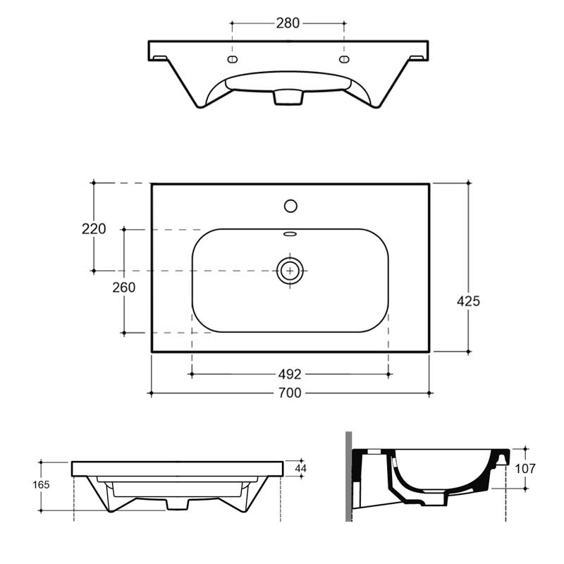 Ширина, мм700Глубина, мм425Высота, мм165КоллекцияМатериалфаянсФормапрямоугольнаяМонтажмебельныйЦветбелыйГарантия5 летОтверстие для смесителядаВес единицы:17.55Производитель:КераминПоверхность:Глянцевая