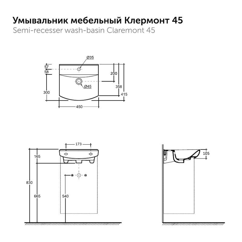 Умывальник Керамин Клермонт 45 мебельный белый