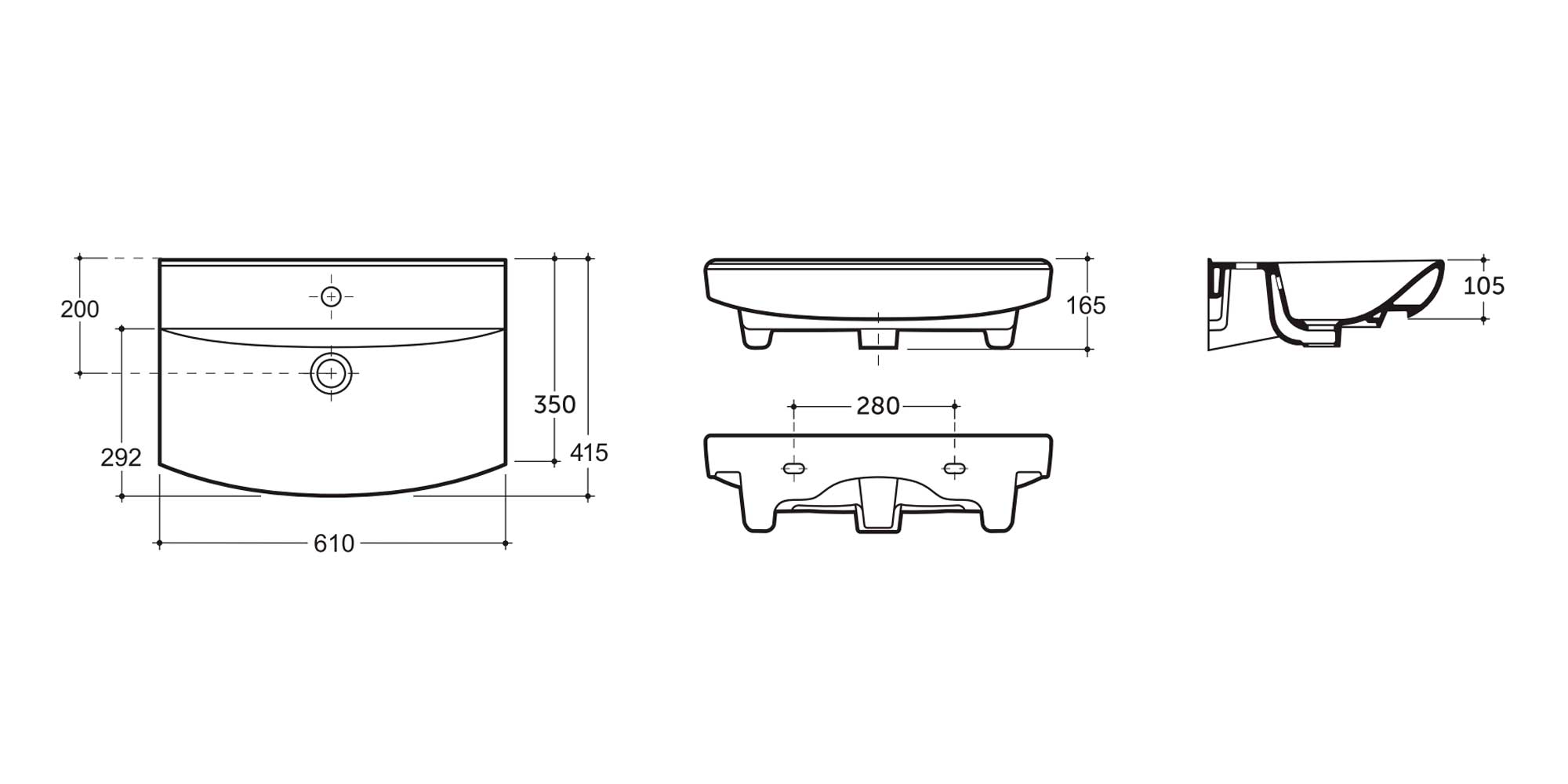 Ширина, мм610Глубина, мм415Высота, мм165КоллекцияМатериалфарфорФормапрямоугольнаяМонтажмебельныйЦветбелыйГарантия5 летОтверстие для смесителядаГабариты упаковки (ширина-глубина-высота)630х176х497Вес единицы:16.20Поверхность:Глянцевая