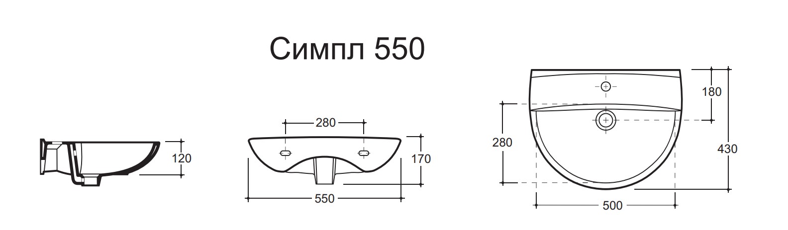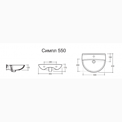 Умывальник Керамин Симпл 55 без отверстия белый + крепление