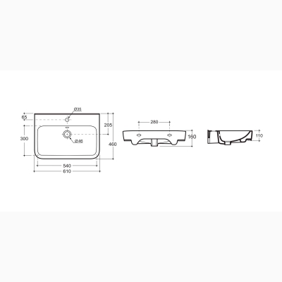 Ширина, мм610Глубина, мм460Высота, мм160КоллекцияМатериалфарфорФормапрямоугольнаяМонтажподвесной, на пьедесталЦветбелыйГарантия5 летОтверстие для смесителядаГабариты упаковки (ширина-глубина-высота)630х226х527Вес единицы:18.80Производитель:КераминПоверхность:Глянцевая