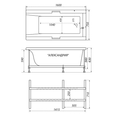 Ванна акриловая Triton Алекса 160 x 75 (с каркасом)