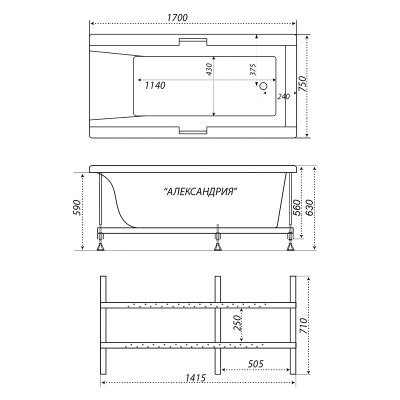Ванна акриловая Triton Алекса 170 x 75 (с каркасом)