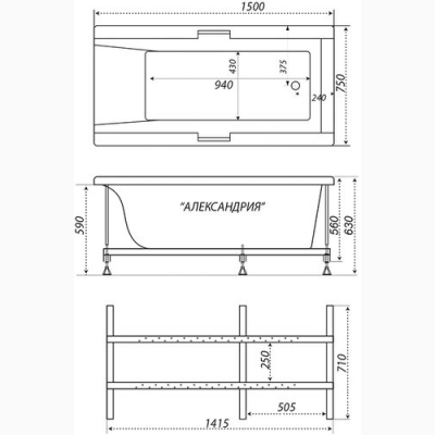 - Ванна акриловая Triton Александрия 150x75 люкс с гидромассажем