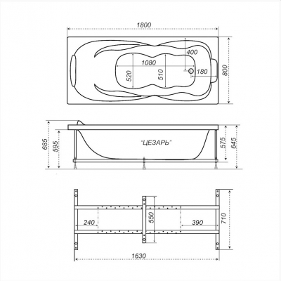 - Ванна акриловая Triton Цезарь 180 x 80 базовая