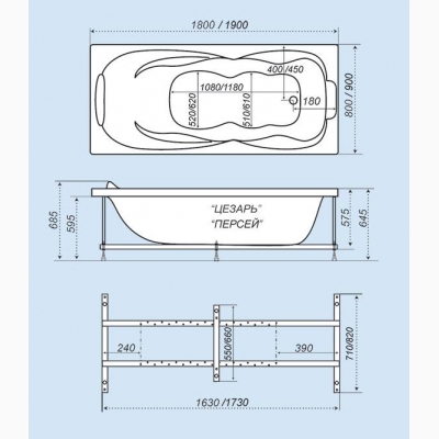 Комплектация : ванна, каркас, боковой гидромассаж (6 форсунок), кран-переключатель