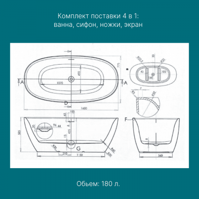 В интернет-магазине keramin.by Вы сможете выбрать и купить Ванна FORETTA AURA 1600x800 в Минске. Ванна FORETTA AURA 1600x800 по доступной цене