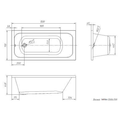 Ванна MITRA 1500х700 комплект 1 (ножки)