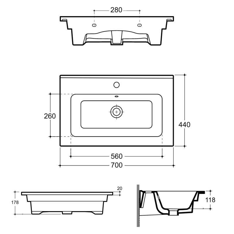 Ширина, мм700Глубина, мм440Высота, мм178КоллекцияМатериалфаянсФормапрямоугольнаяМонтажмебельныйЦветбелыйОтверстие для смесителядаВес единицы:10.00Производитель:КераминПоверхность:Глянцевая