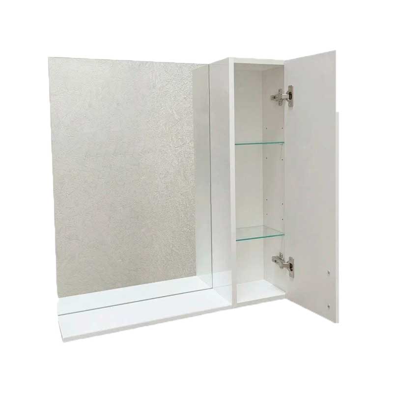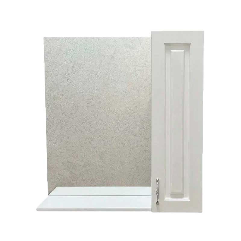 Шкаф навесной с зеркалом в собранном виде. 1 отделение, распашная дверь на петлях с доводчиком, внутри 2 стеклянные полки. Материал фасада: МДФ окрашен, белая высокоглянцевая эмаль (5 слоев, Италия). Боковины корпуса: МДФ окрашен, белая высокоглянцевая эмаль (5 слоев, Италия). Комплектуется с тумбой KELN 67 и пеналами KELN 22, 23, 23К (с корзиной).