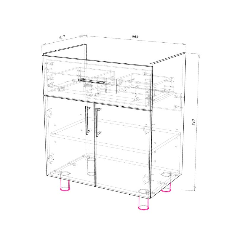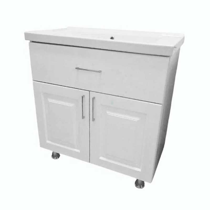 Тумба под умывальник для ванной комнаты в собранном виде. Мебельные опоры 4 шт., необходима установка согласно разметки на дне корпуса. 1 выдвижной ящик, направляющие скрытого монтажа с доводчиками, предусмотрен вырез под сифон; 2 распашные двери (петли с доводчиками). Материал фасада: МДФ окрашен, белая высокоглянцевая эмаль (5 слоев, Италия). Боковины корпуса: МДФ окрашен, белая высокоглянцевая эмаль (5 слоев, Италия). Комплектуется умывальником Тобаго 70 ФС. Доукомплектовать можно пеналом и зеркалом из коллекции Alba.