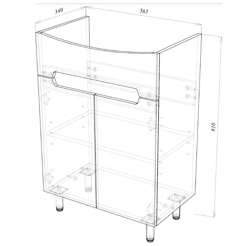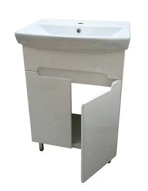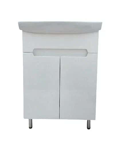 Тумба под умывальник для ванной комнаты в собранном виде. Мебельные опоры 4 шт., необходима установка согласно разметки на дне корпуса. 2 распашные двери (петли с доводчиками). Внутри 1 полка. Материал фасада: МДФ окрашен, белая высокоглянцевая эмаль (5 слоев, Италия). Боковины корпуса: МДФ окрашен, белая высокоглянцевая эмаль (5 слоев, Италия). Комплектуется умывальником Клермонт 60. Доукомплектовать можно пеналом и зеркалом из коллекции Marko.
