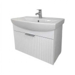 ONDA - коллекция с фасадами c гребёнкой в виде волны. Тумба с одним выдвижным ящиком. Направляющие скрытого монтажа с доводчиками, полного выдвижения