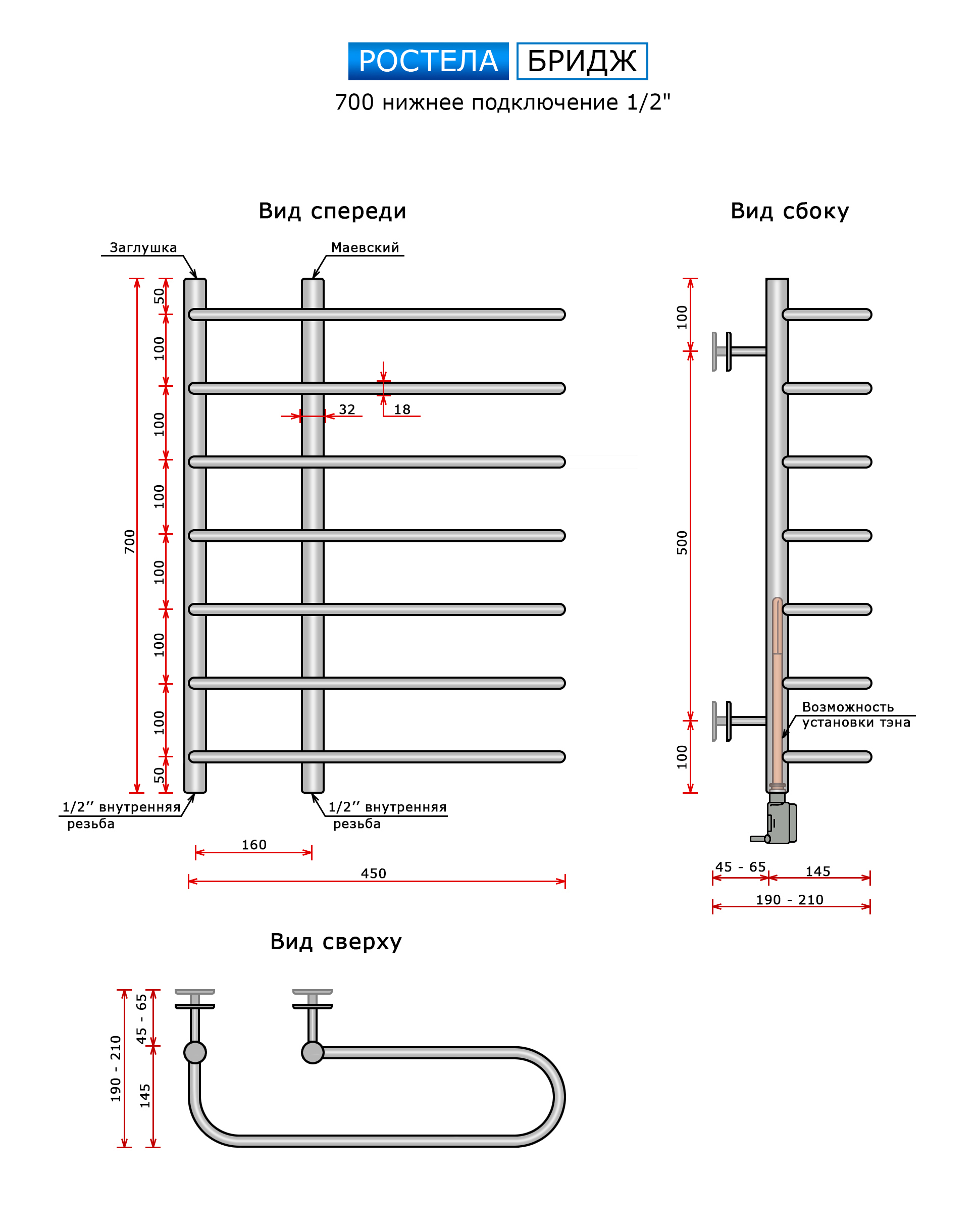 Способ нагреваполотенцесушитель водянойМатериалнержавеющая стальФормалесенкаШирина, мм450Высота, мм700Межосевое расстояние160Диаметр подключения1/2"Диаметр трубы32 ммРезьба (наружная/внутр)внутренняяЦветхромПокрытиеполированный (блестящий)Поворотные секциинетГарантия5 летПроизводительРостелаВес единицы:6.40