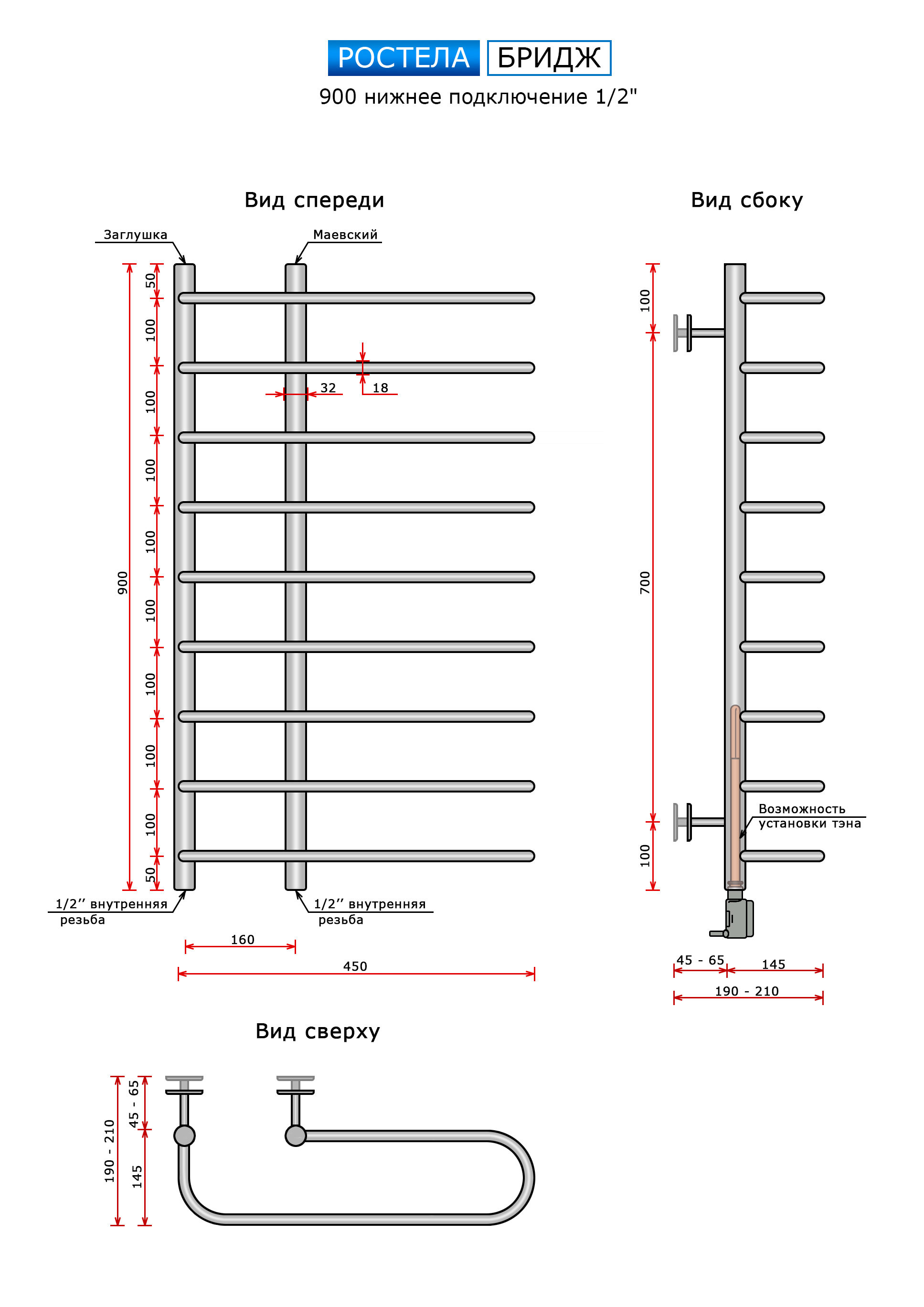 Бридж (нижн.подв., 1/2 резьба) 160 x 900 x 450 / 9 купить в Минске по доступной цене в интернет-магазине keramin.by