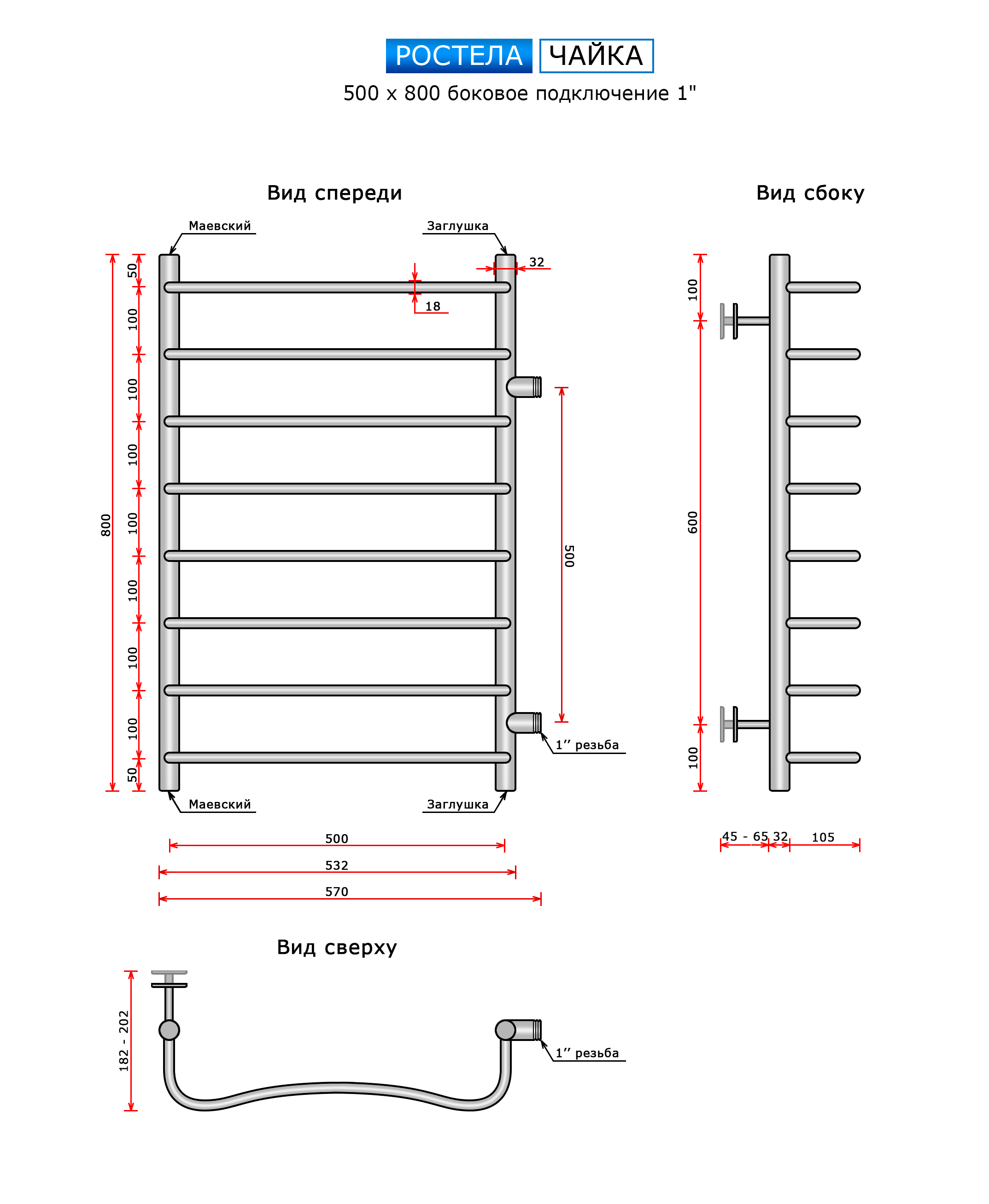 Чайка (бок.подв., 1" резьба) 500 х 800 / 8