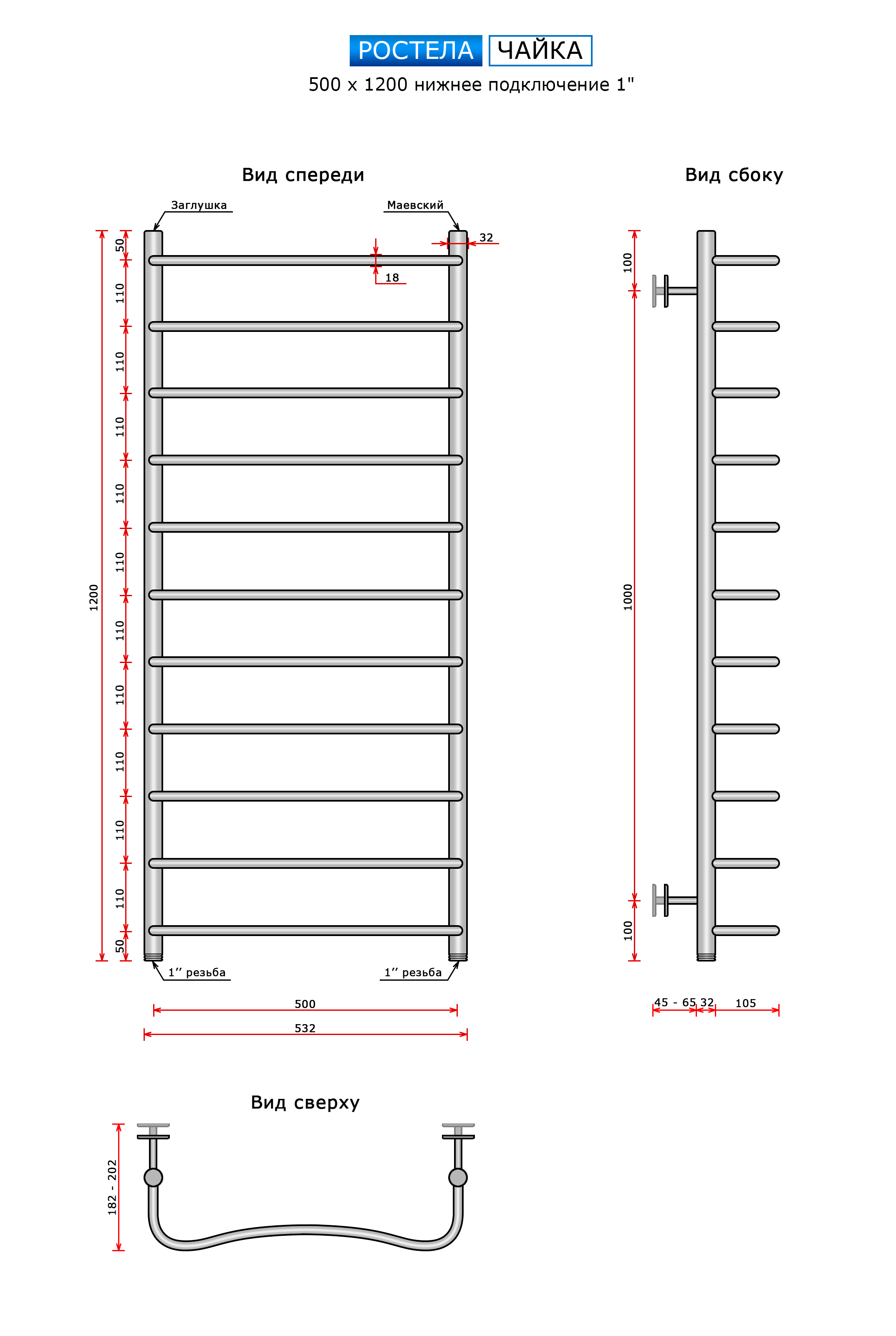 Чайка (нижн.подв., 1" резьба) 500 х 1200 /11 купить в Минске по доступной цене в интернет-магазине keramin.by