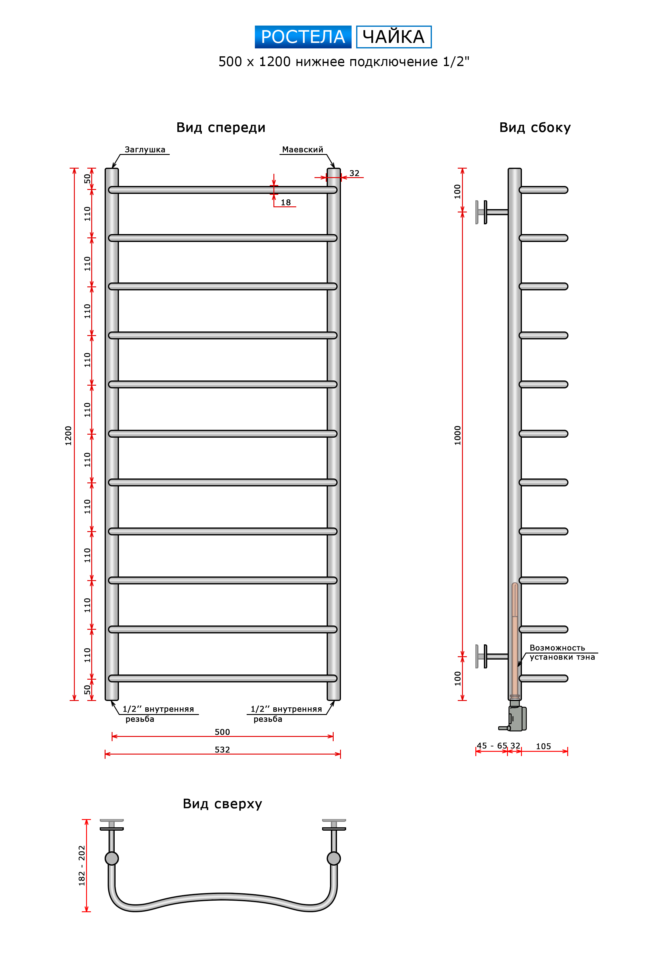 Чайка (нижн.подв., 1/2" резьба) 500 х 1200 /11 купить в Минске по доступной цене в интернет-магазине keramin.by