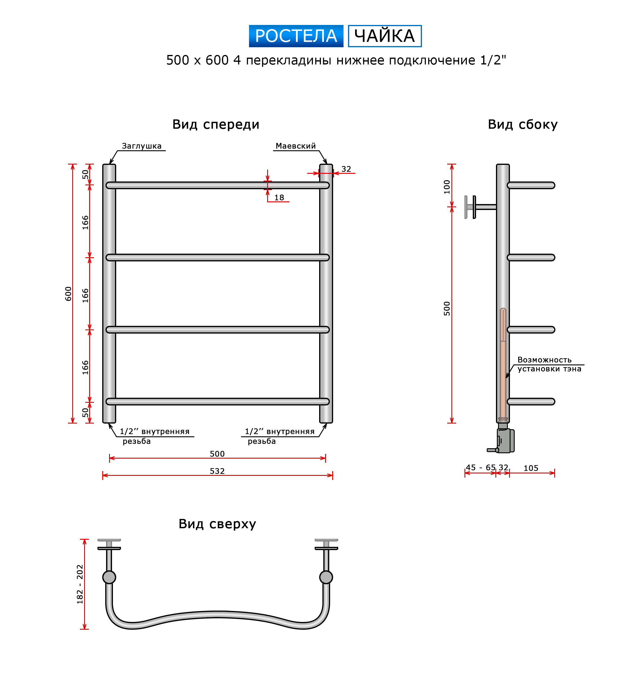 Чайка (нижн.подв., 1/2" резьба) 500 х 600 / 4