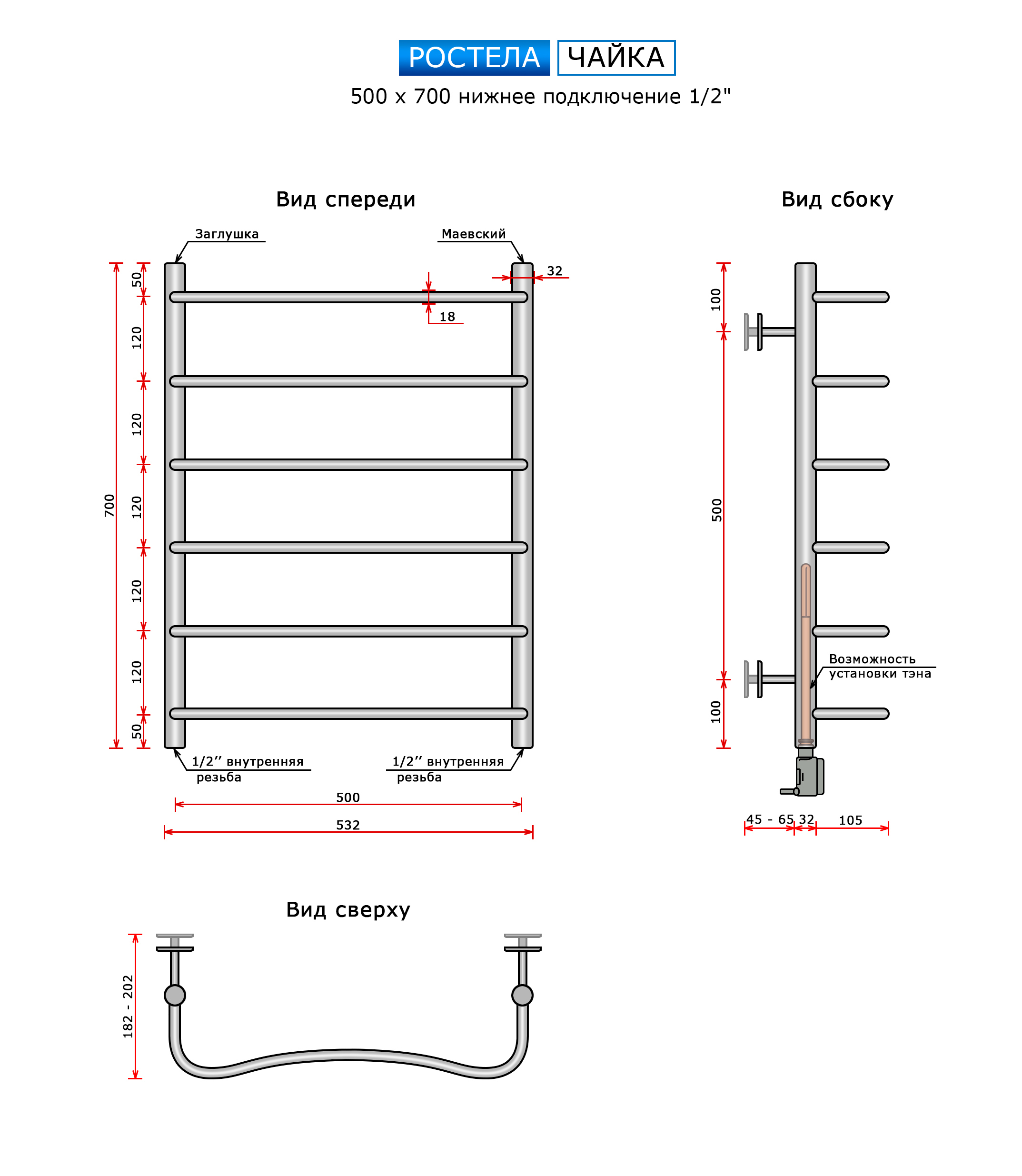 Чайка (нижн.подв., 1/2" резьба) 500 х 700 / 6