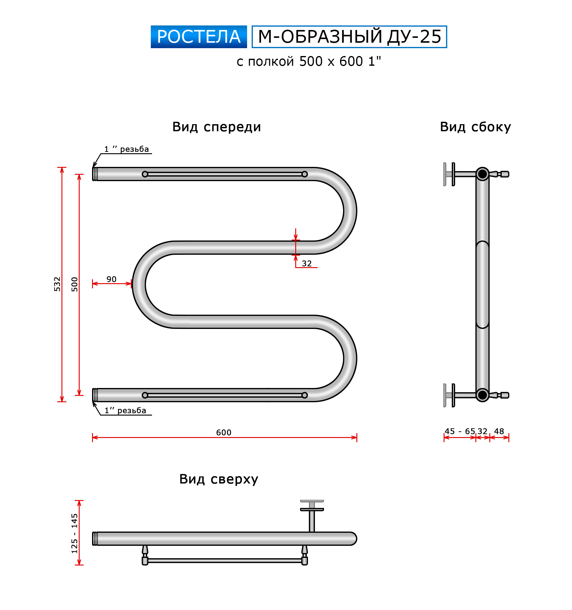 Полотенцесушитель водяной Ростела ДУ-25 М люкс с полочкой 500*600 купить в Минске по доступной цене в интернет-магазине keramin.by