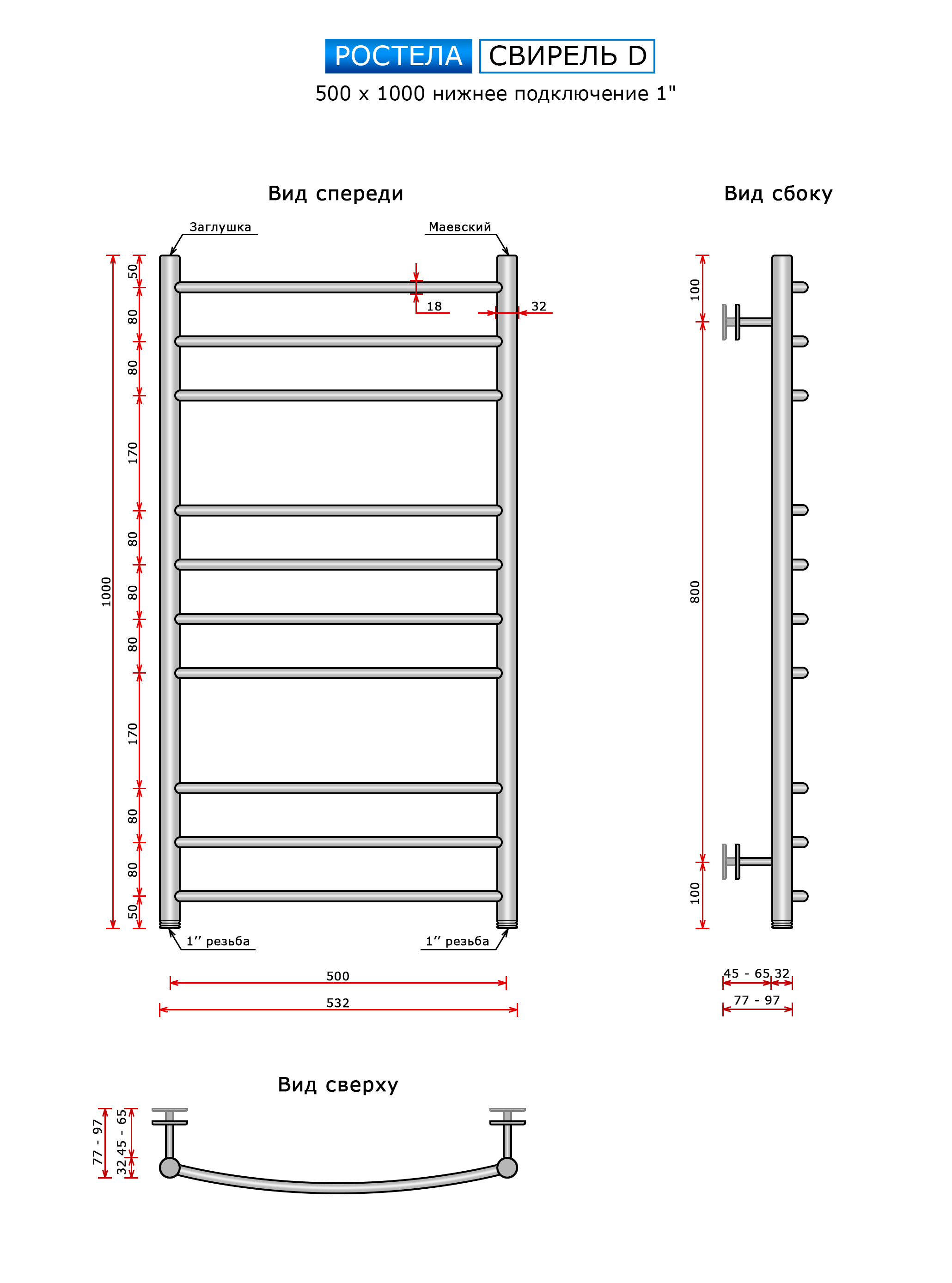 Способ нагреваполотенцесушитель водянойМатериалнержавеющая стальФормалесенкаШирина, мм532Высота, мм1000Межосевое расстояние500Диаметр подключения1"Диаметр трубы32ммРезьба (наружная/внутр)наружнаяЦветхромПокрытиеполированный (блестящий)Поворотные секциинетГарантия5 летПроизводительРостелаВес единицы:0.00