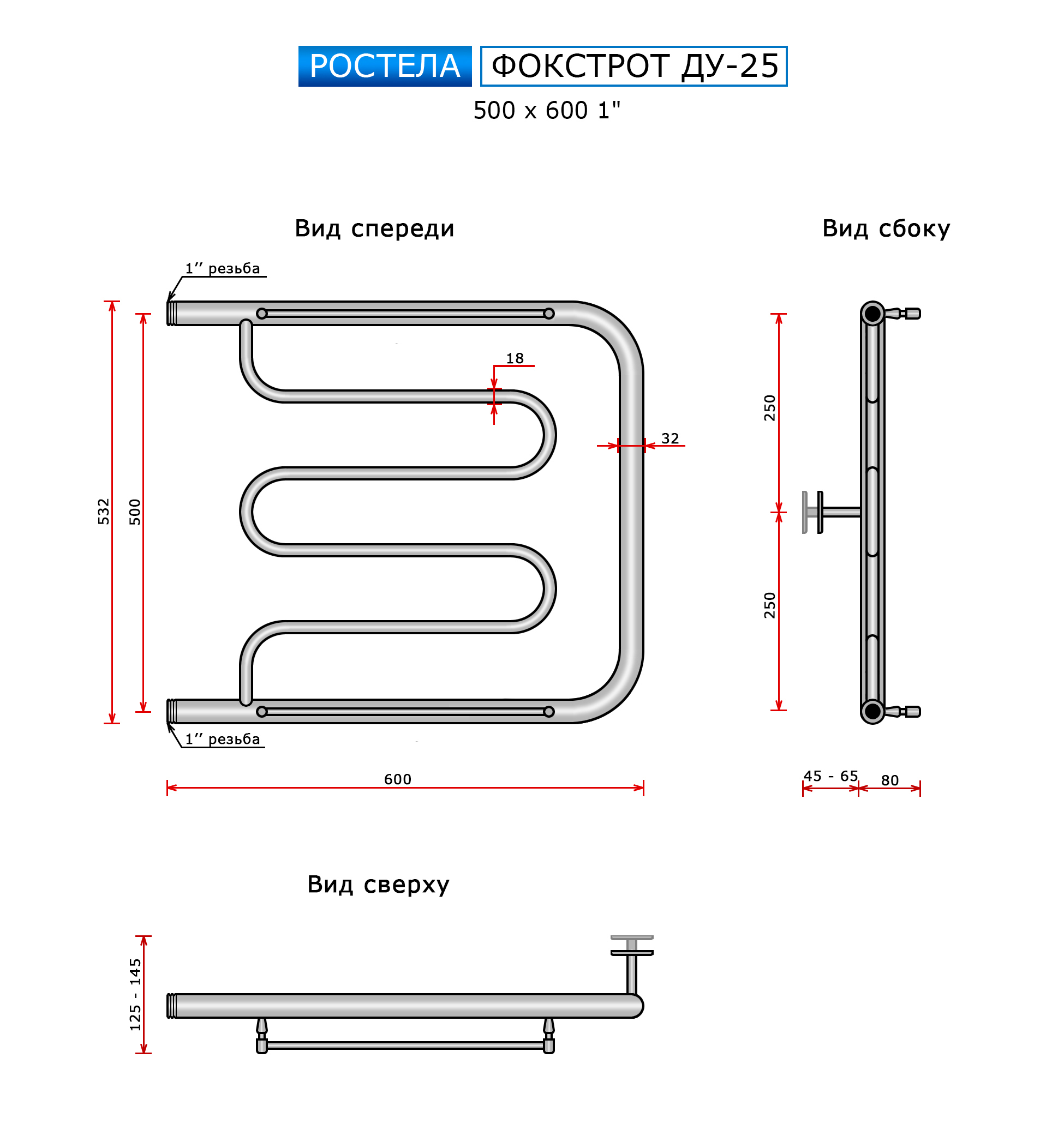 Полотенцесушитель водяной Ростела ДУ-25 Фокстрот люкс 500*600 кор.рез. купить в Минске по доступной цене в интернет-магазине keramin.by