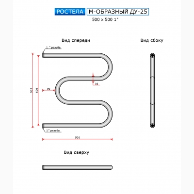 Полотенцесушитель водяной Ростела М ДУ-25 оцинкованный 500*500 купить в Минске по доступной цене в интернет-магазине keramin.by