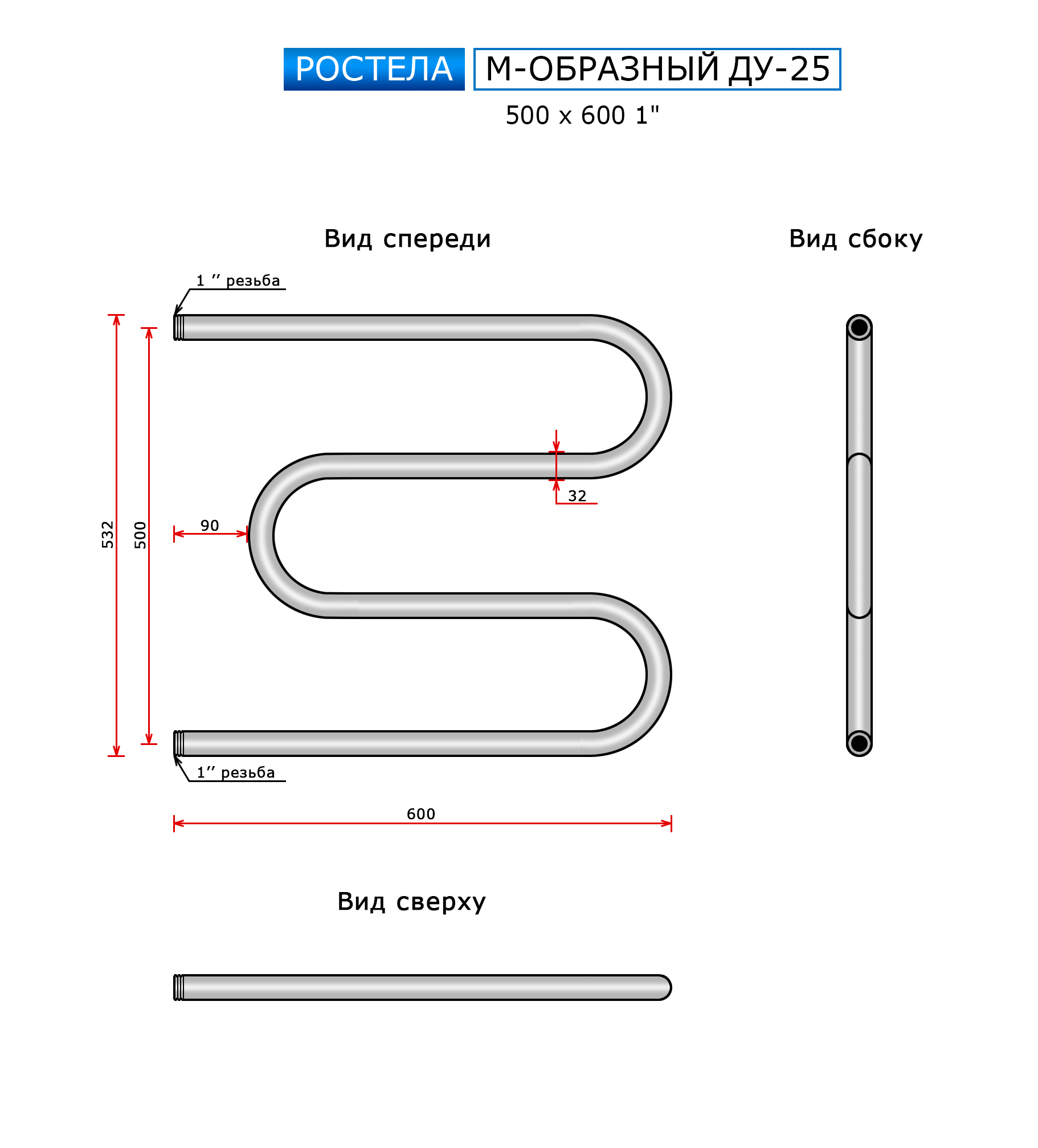 Полотенцесушитель водяной Ростела М ДУ-25 оцинкованный белый 500*600 купить в Минске по доступной цене в интернет-магазине keramin.by
