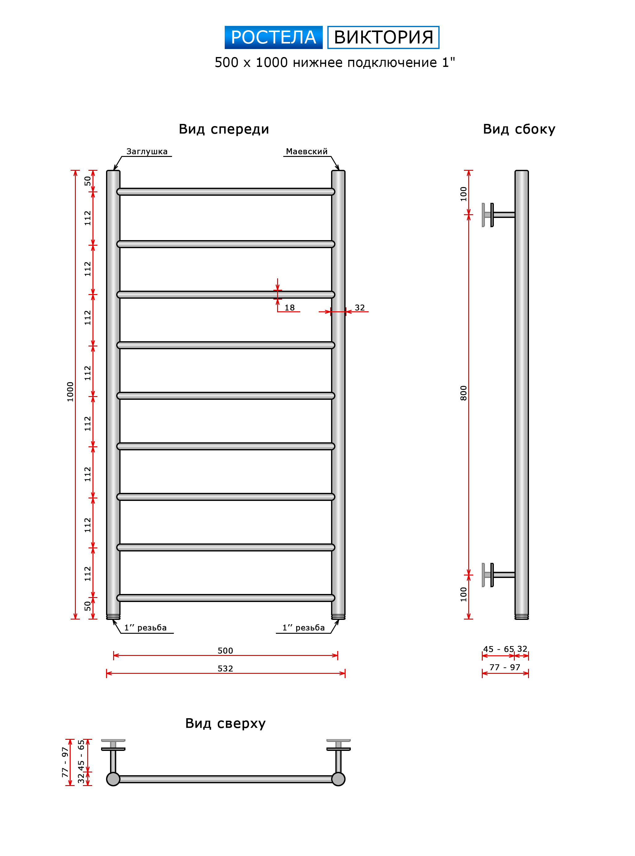 Полотенцесушитель водяной Ростела Виктория люкс (1") 500*1000/9 купить в Минске по доступной цене в интернет-магазине keramin.by