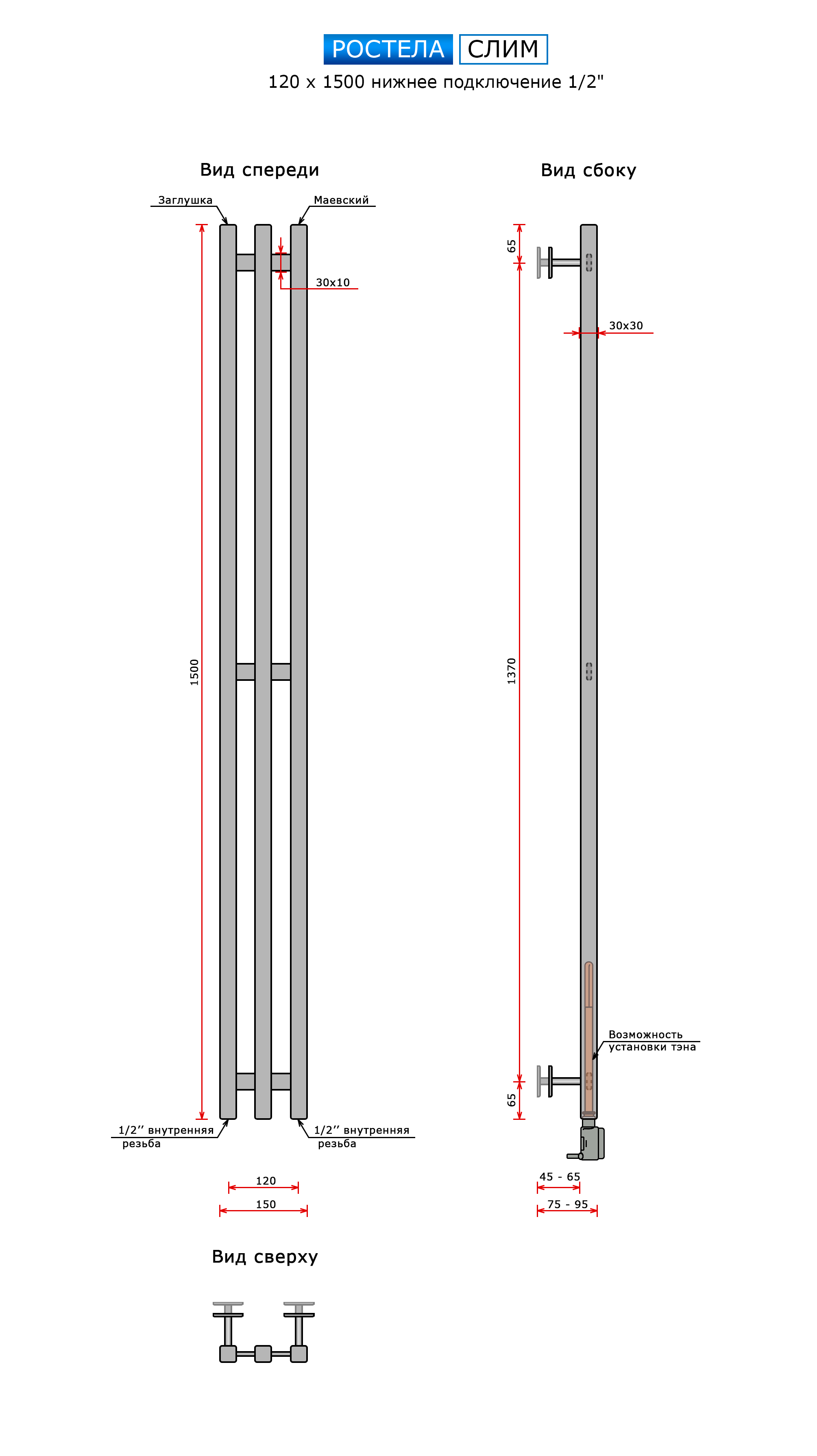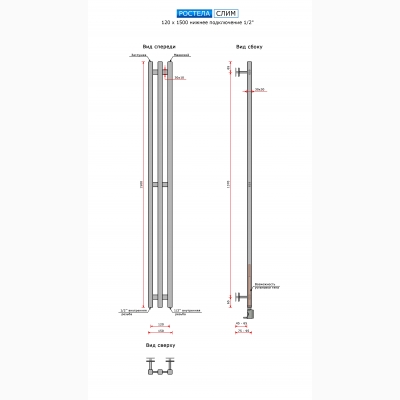 Полотенцесушитель водяной Слим люкс 120*1500/3 черный купить в Минске по доступной цене в интернет-магазине keramin.by