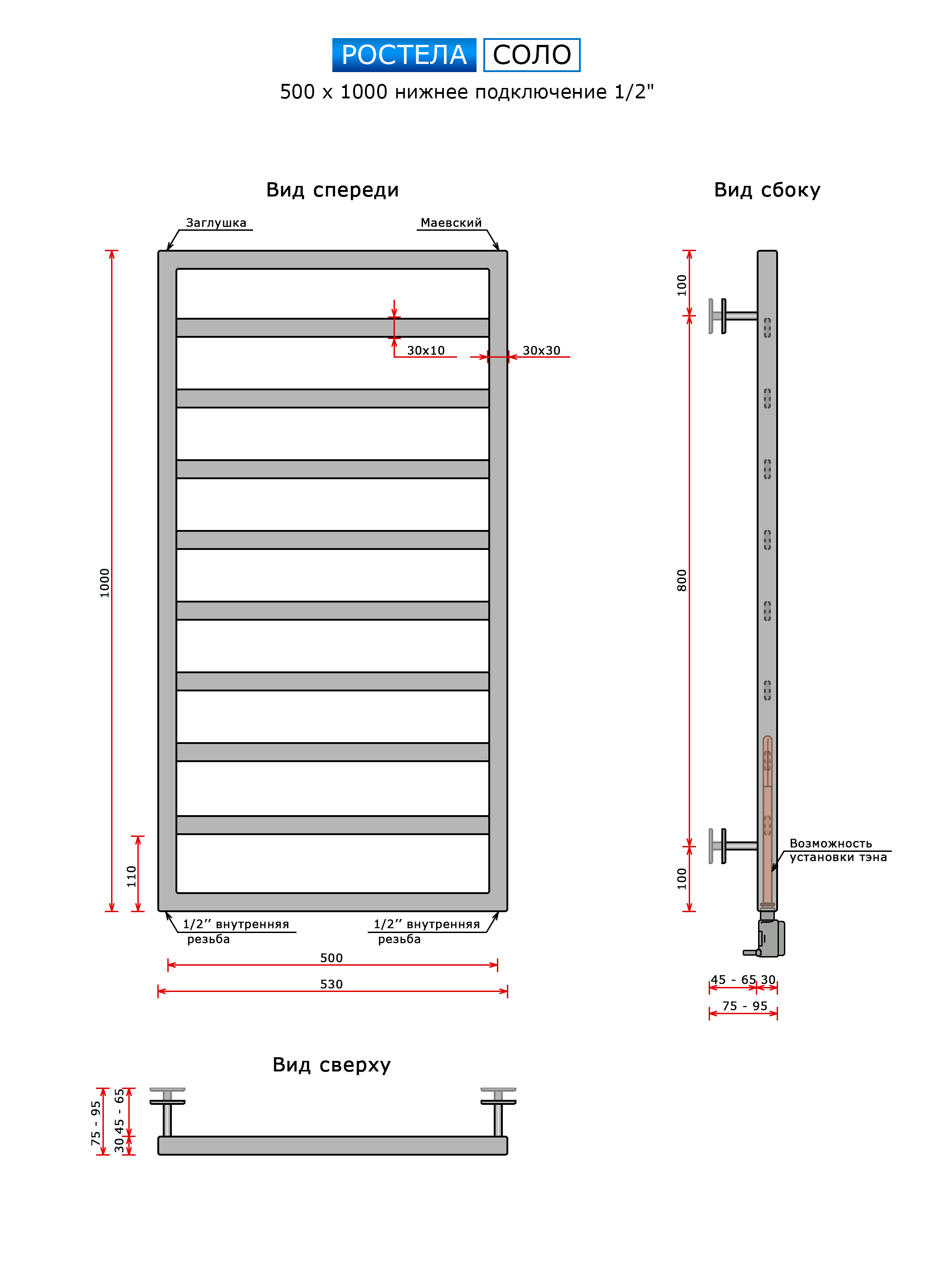 Способ нагреваполотенцесушитель водянойМатериалнержавеющая стальФормалесенкаШирина, мм500Высота, мм1000Межосевое расстояние500Диаметр подключения1/2"Диаметр трубы30 ммРезьба (наружная/внутр)внутренняяЦветхромПокрытиеполированный (блестящий)Поворотные секциинетГарантия5 летПроизводительРостелаВес единицы:8.50