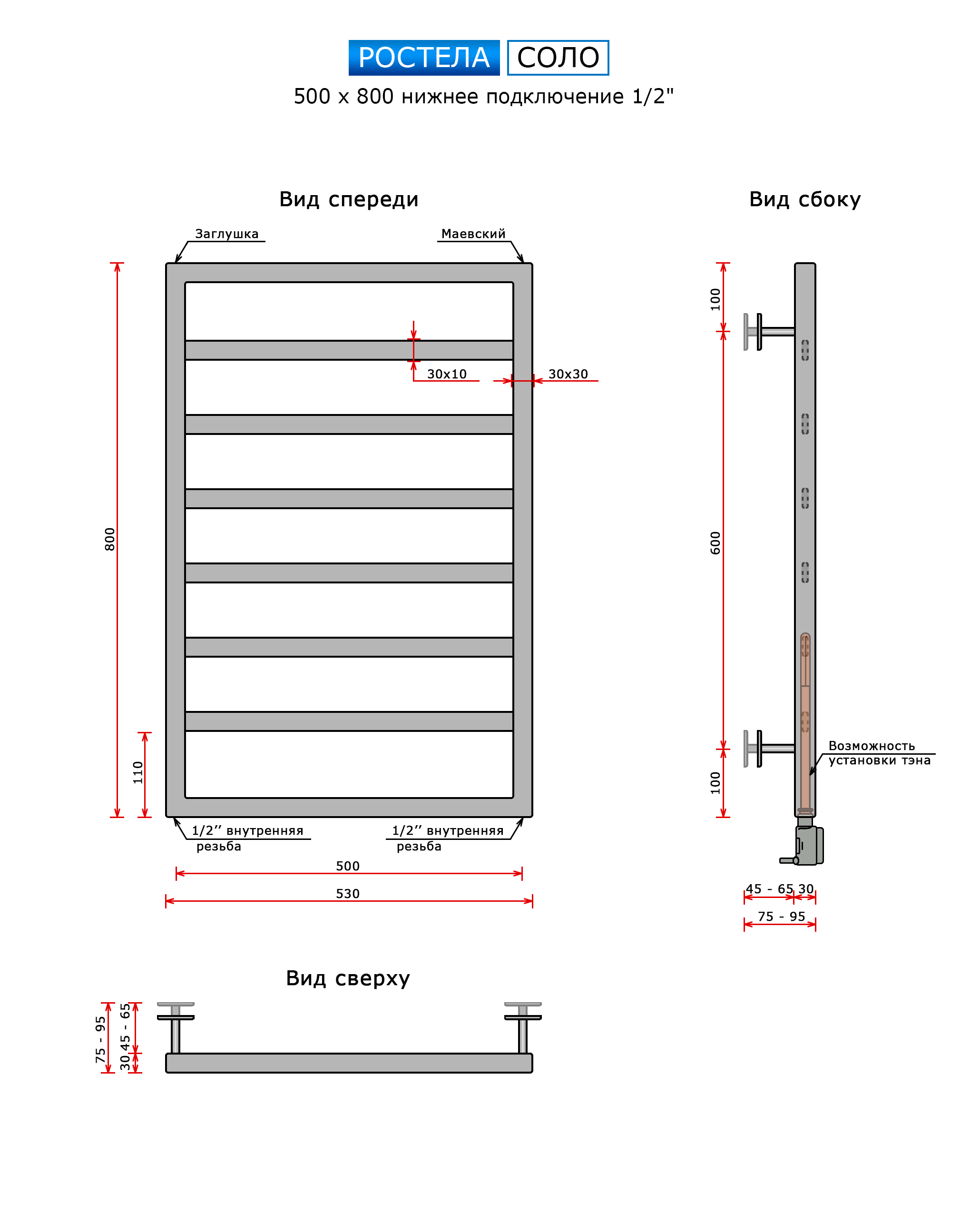 Способ нагреваполотенцесушитель водянойМатериалнержавеющая стальФормалесенкаШирина, мм500Высота, мм800Межосевое расстояние500Диаметр подключения1/2"Диаметр трубы30 ммРезьба (наружная/внутр)внутренняяЦветхромПокрытиеполированный (блестящий)Поворотные секциинетГарантия5 летПроизводительРостелаВес единицы:7.00