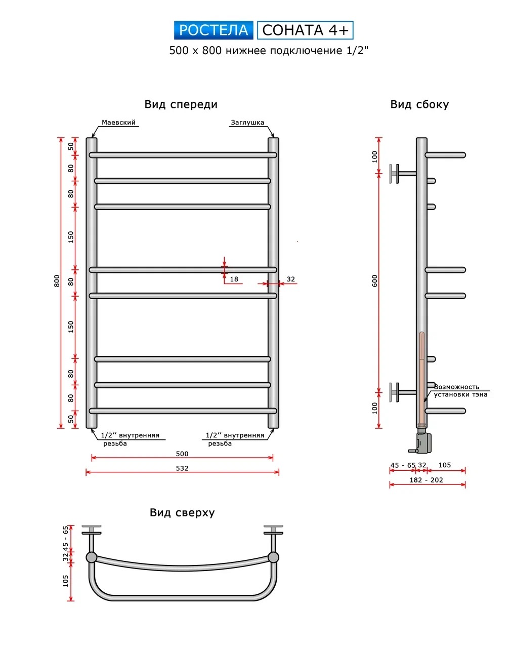 Соната 4+ (нижн.подв., 1/2" резьба) 500 x 800 / 8