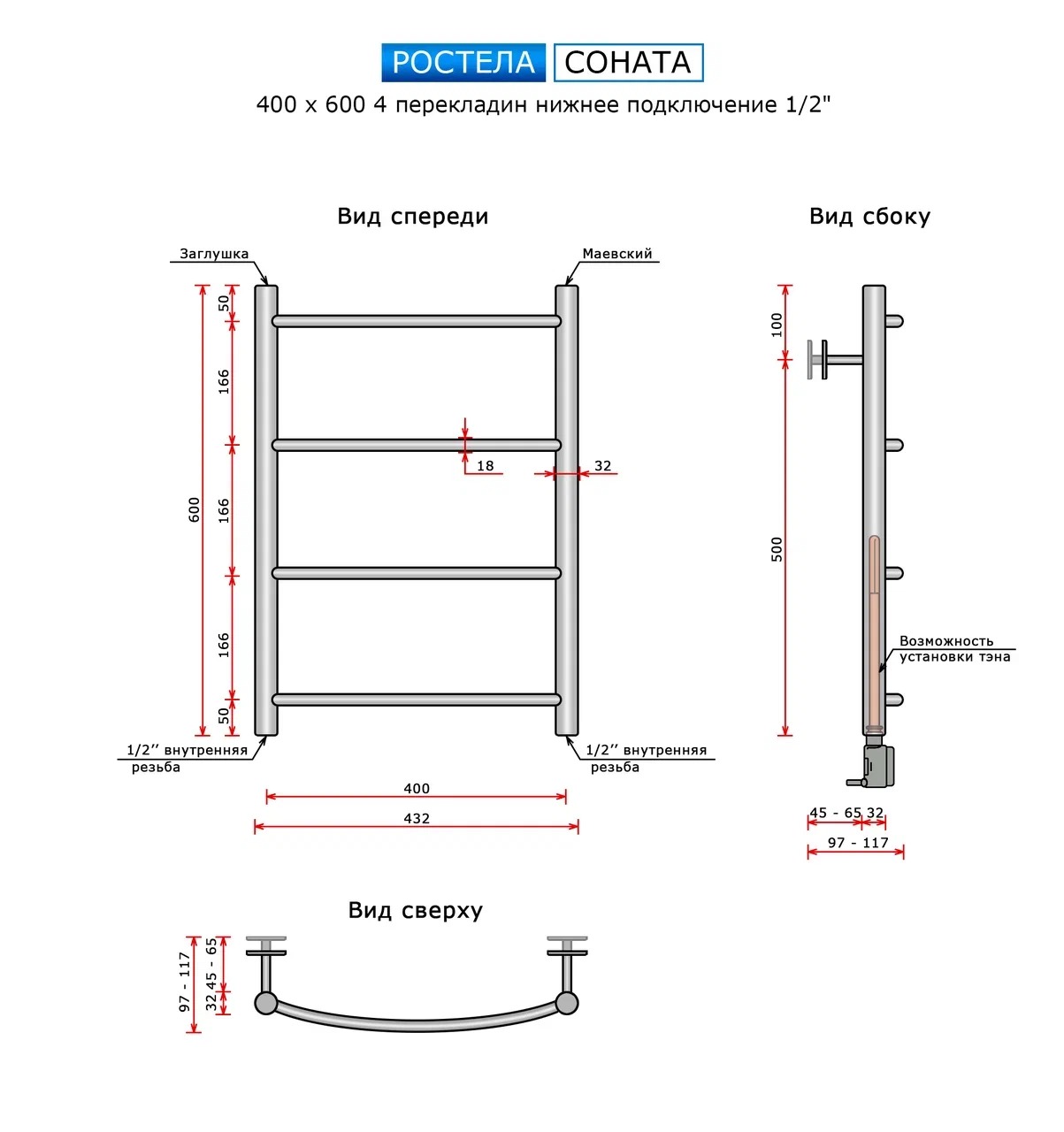 Соната (нижн.подв., 1/2" резьба) 400 х 600 / 4 купить в Минске по доступной цене в интернет-магазине keramin.by