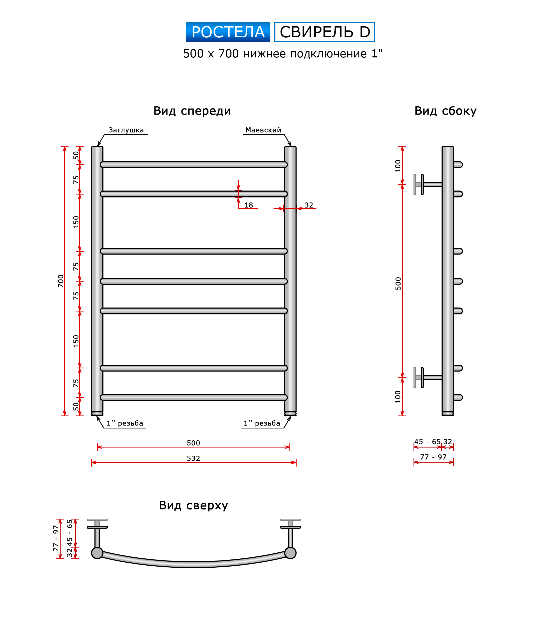 Способ нагреваполотенцесушитель водянойМатериалнержавеющая стальФормалесенкаШирина, мм532Высота, мм700Межосевое расстояние500Диаметр подключения1"Диаметр трубы32ммРезьба (наружная/внутр)наружнаяЦветхромПокрытиеполированный (блестящий)Поворотные секциинетГарантия5 летПроизводительРостелаВес единицы:4.40