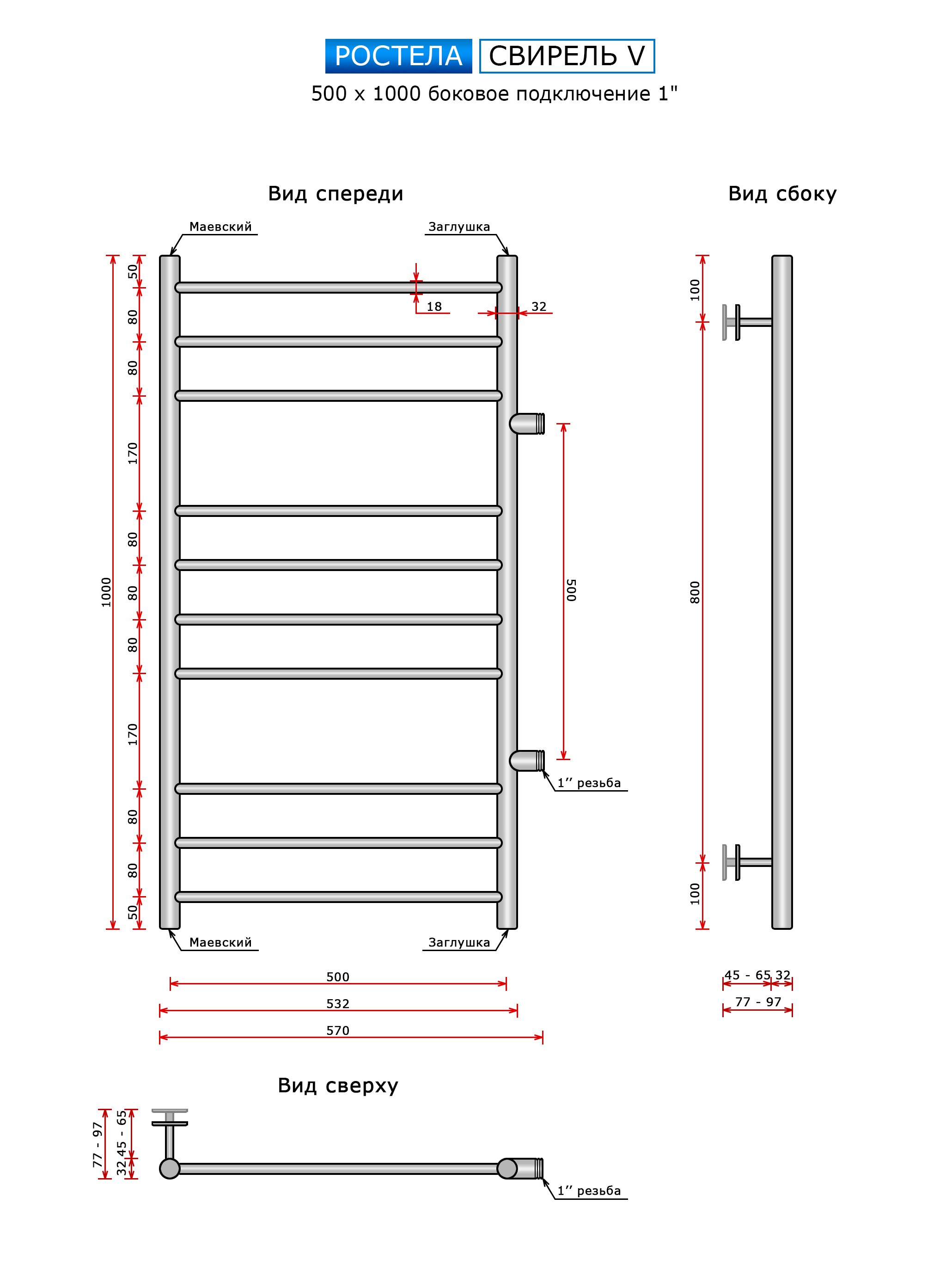 Способ нагреваполотенцесушитель водянойМатериалнержавеющая стальФормалесенкаШирина, мм532Высота, мм1000Межосевое расстояние500Диаметр подключения1"Диаметр трубы32ммРезьба (наружная/внутр)наружнаяЦветхромПокрытиеполированный (блестящий)Поворотные секциинетГарантия5 летПроизводительРостелаВес единицы:6.10